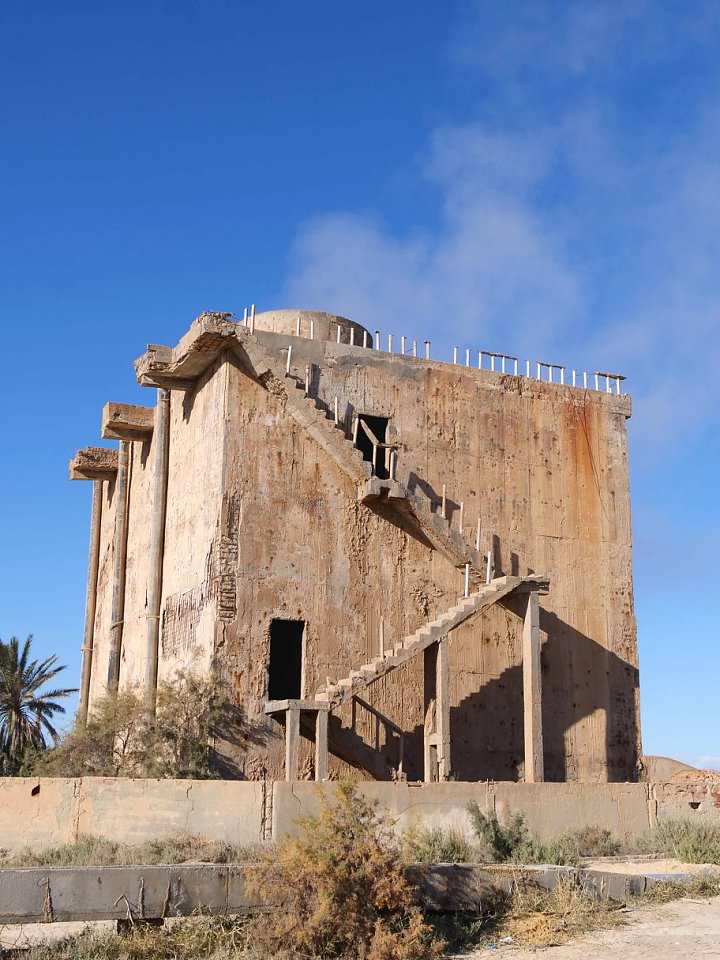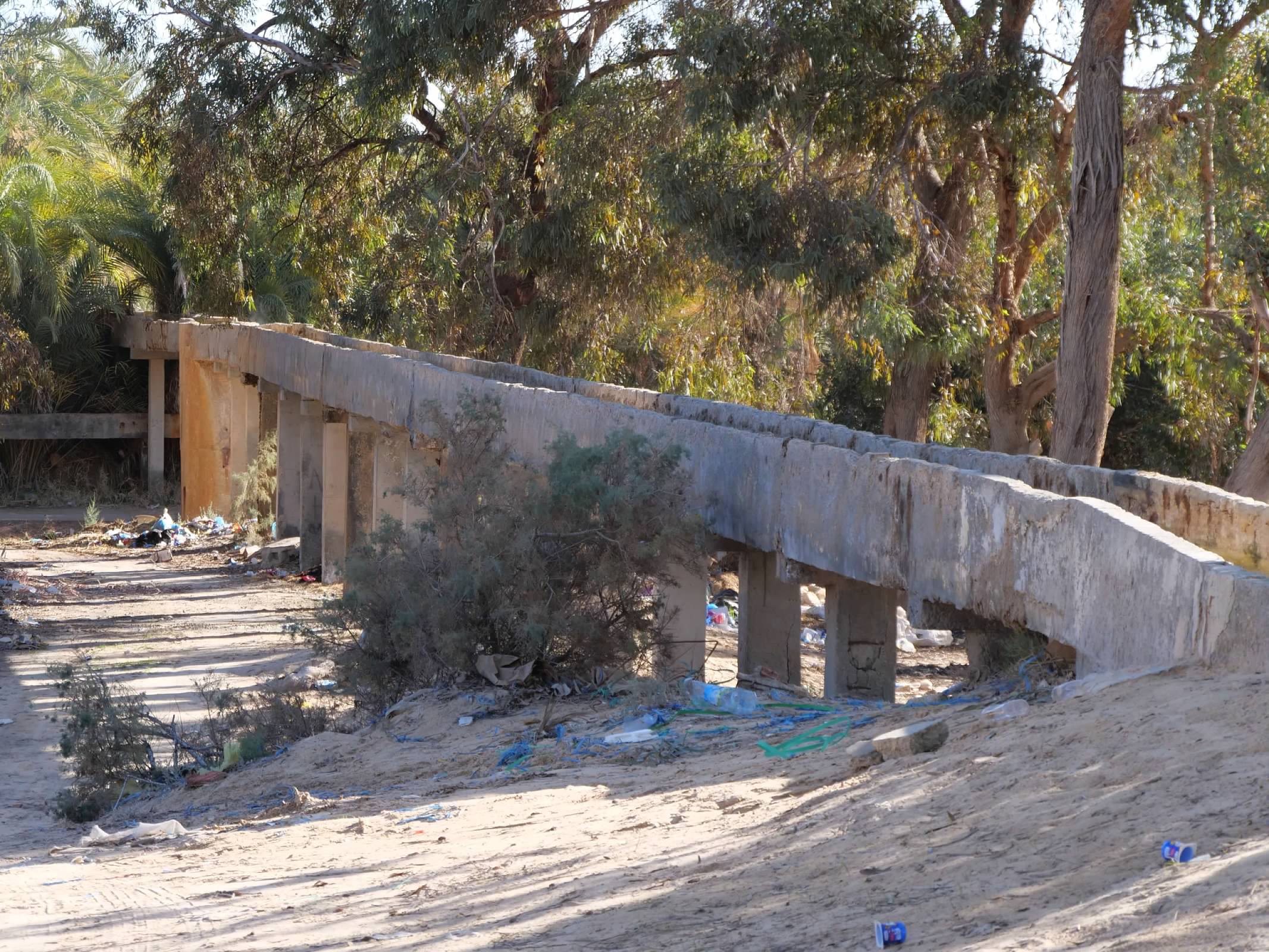 After leaving the desert, we headed towards the oasis town of Tozeur. But on the way, we made an unexpected stop near the town of Zaouia to learn about an interesting local irrigation solution. A deep well taps into a geothermally heated water reserve that brings up water at 80 degrees Celsius, which is much too hot to use for irrigation. To cool the water, they have constructed a tower that allows the water to drop several stories through filters of palm leaves that break the stream into smaller droplets, allowing it to cool. The water then flows into one of several pyramid shaped spirals that allow the water to further cool before it flows into canals that carry it out to the fields.