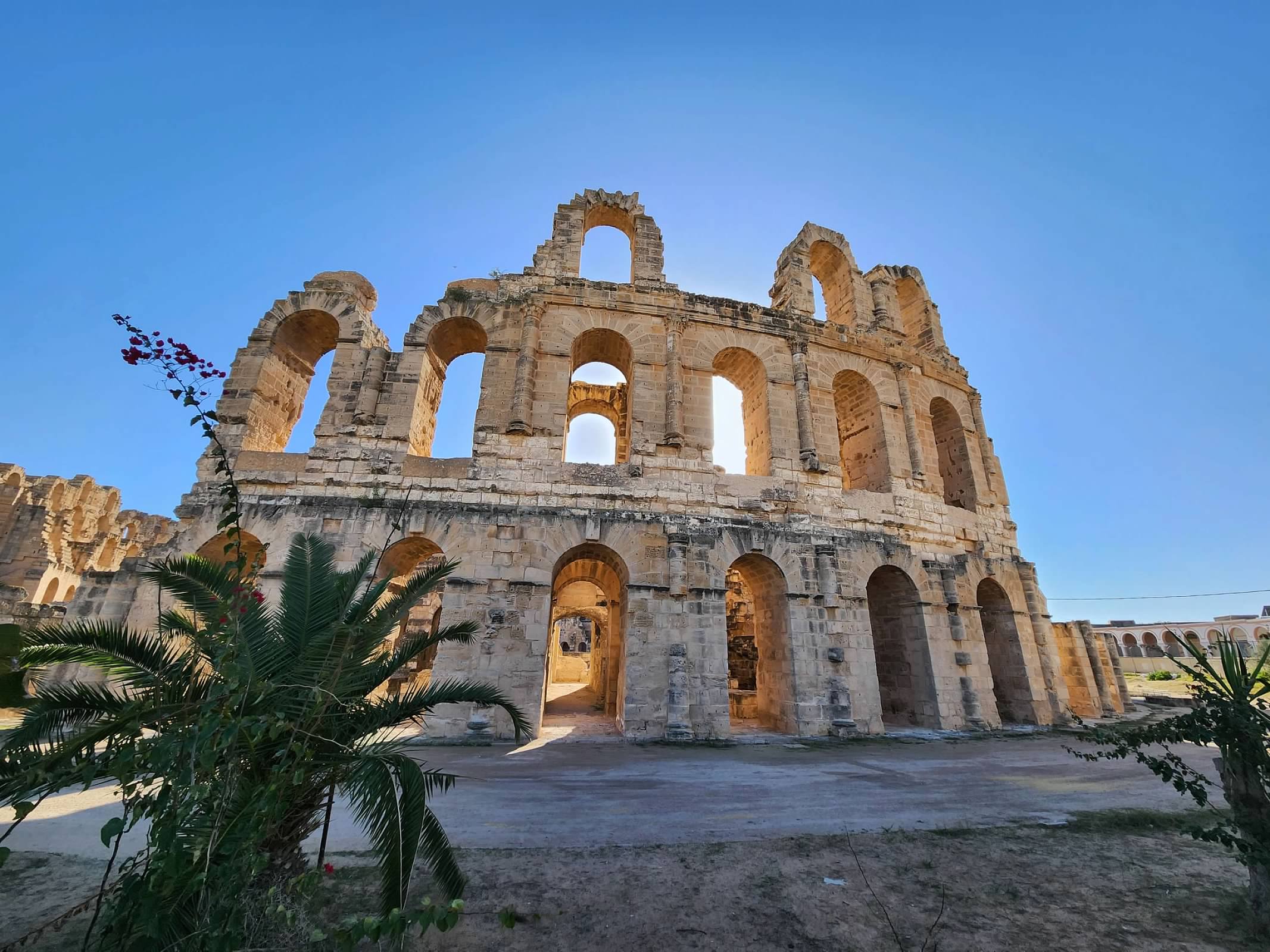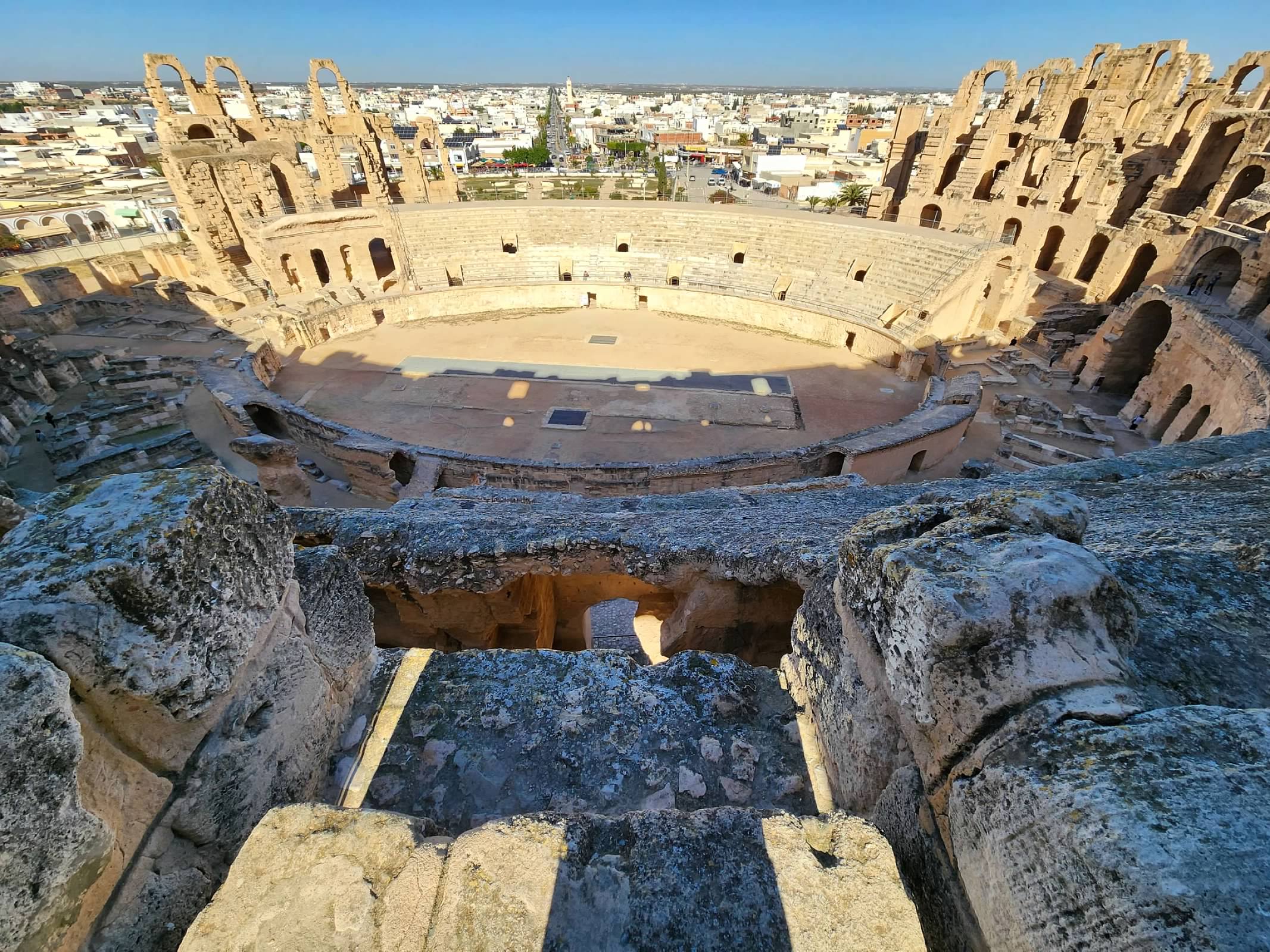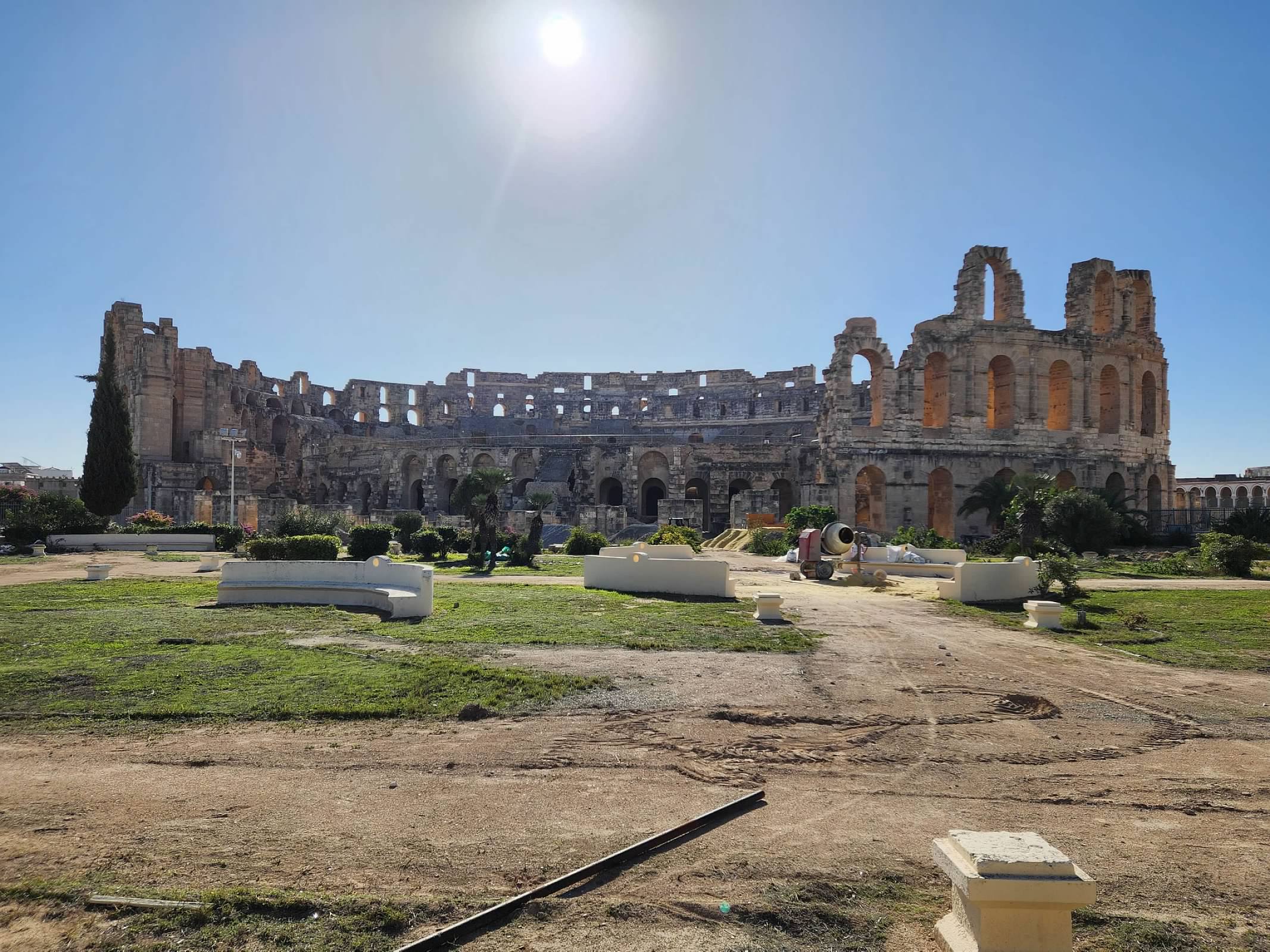 10 February 2026 07:16 pmOur visit to El Jem was an optional addition to our trip, but with a UNESCO World Heritage site, it wasn't difficult to decide to go on the excursion. The star attraction of the day was the Amphitheatre (or Coliseum) of El Jem. Built in the 3rd century CE, this was the third largest coliseum in the Roman world, and is one of the best preserved Roman rock structures in the world, and is unique in Africa. Our bus parked on the far side of the coliseum from the entrance, so our visit began with a walk around the outside of the site. The coliseum sits in the middle of the modern city of El Jem, but has a large enough buffer zone that the city doesn't feel crowded up against the ruins.