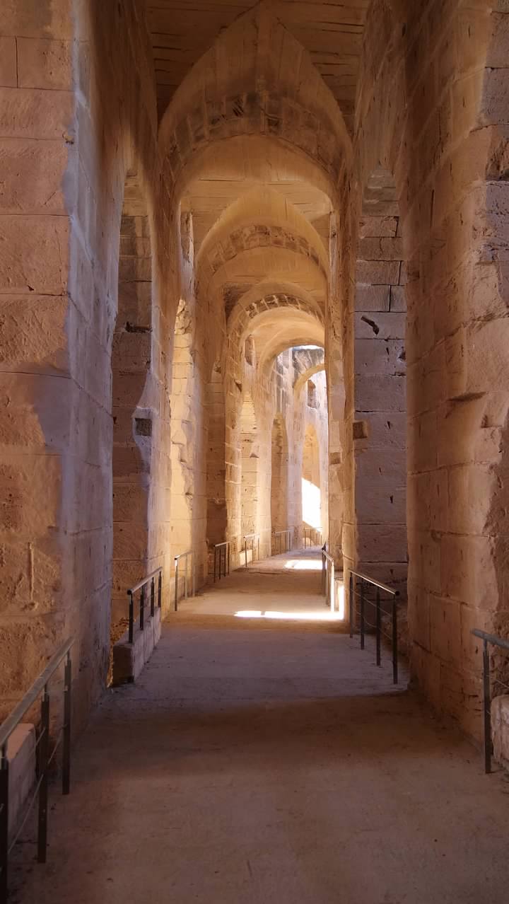 We then went up and stood on the arena floor while our trip leader talked about the history of the structure. In its day, the coliseum here is believed to have been able to seat more than 30,000 spectators. It was later used as a fortress during invasions by the Vandals and then by the Arabs. We then worked our way up into the stands, to the highest levels that are open to the public, where we got a sense of what the view of the spectators might have been.