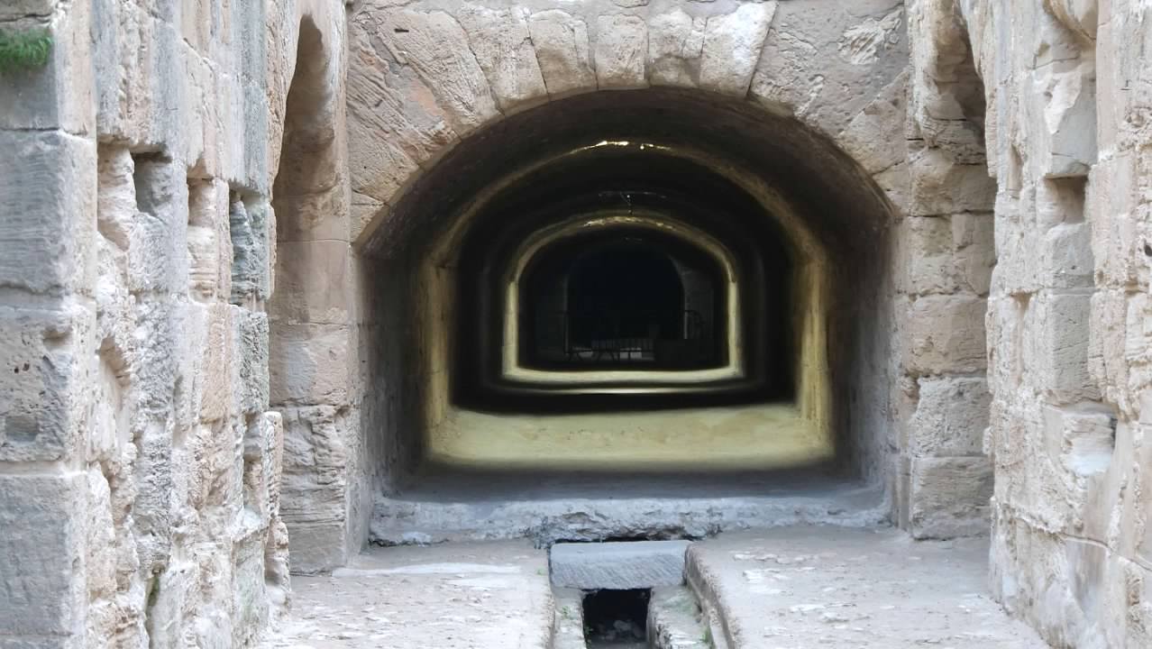 Once inside, our trip leader became our tour guide of the site. First he took us down to the underground spaces, where the gladiators and animals were housed until it was time for them to go up to the arena. There was an extensive network of chambers and corridors, and even the tunnel that brought the competitors into the coliseum still exists (although it is closed to visitors).